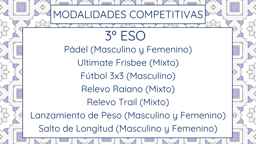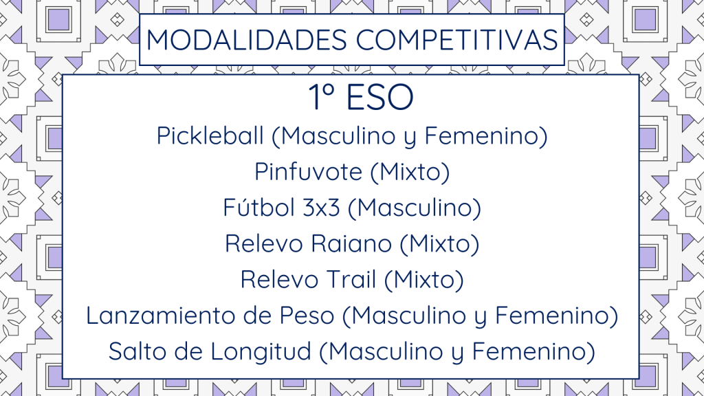 Modalidades deportivas y Categorías