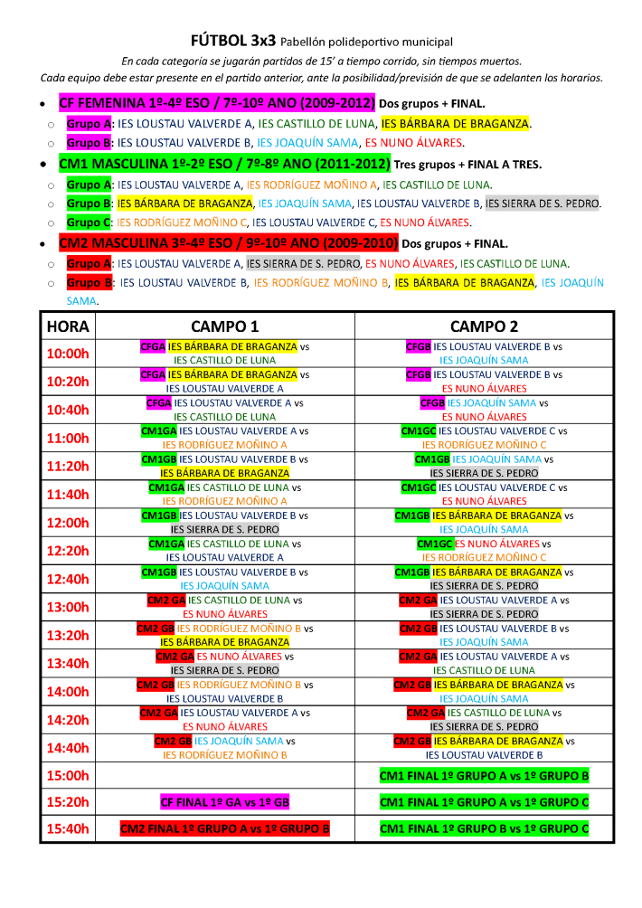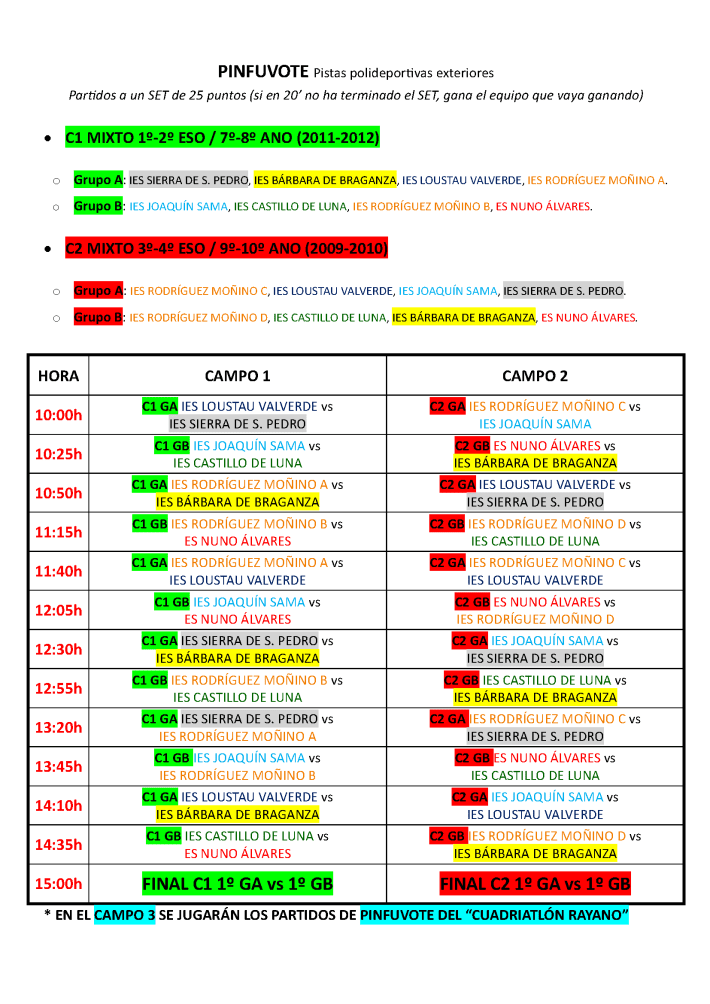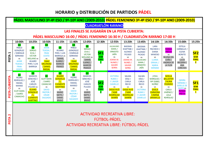 Horarios ¡¡NUEVO!! MODIFICACIONES EN EL PROGRAMA GENERAL DEBIDO A LA LLUVIA Calendario de competiciones FÚTBOL 7 INTERCENTROSCUADRIATLÓN RAYANOCUADRIATLÓN RAYANOULTIMATE FRISBEEFÚTBOL 3X3PINFUVOTEPICKLEBALLPICKLEBALLPICKLEBALLPÁDELPÁDELPÁDELPETANCACORNHOLEATLETISMOATLETISMOATLETISMOATLETISMOATLETISMOATLETISMOATLETISMOATLETISMOATLETISMOATLETISMO